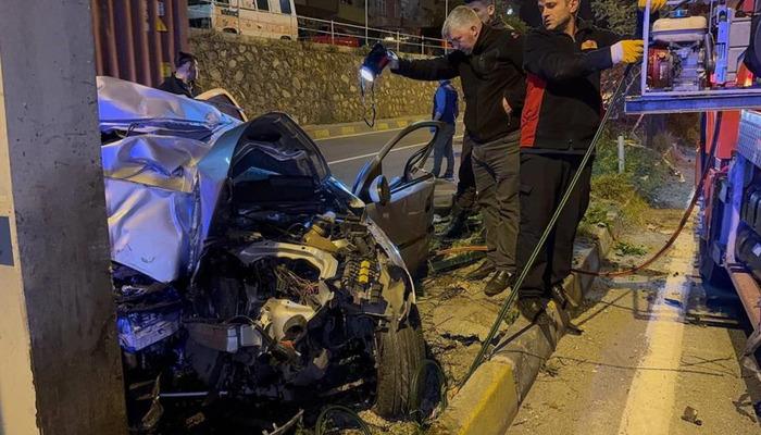 Karayolu By Zonguldak-Alapl Spice Taşaşi, üst geçidin ayağına çarparak araba kontrolünde. Kazada 2 kişi öldü.